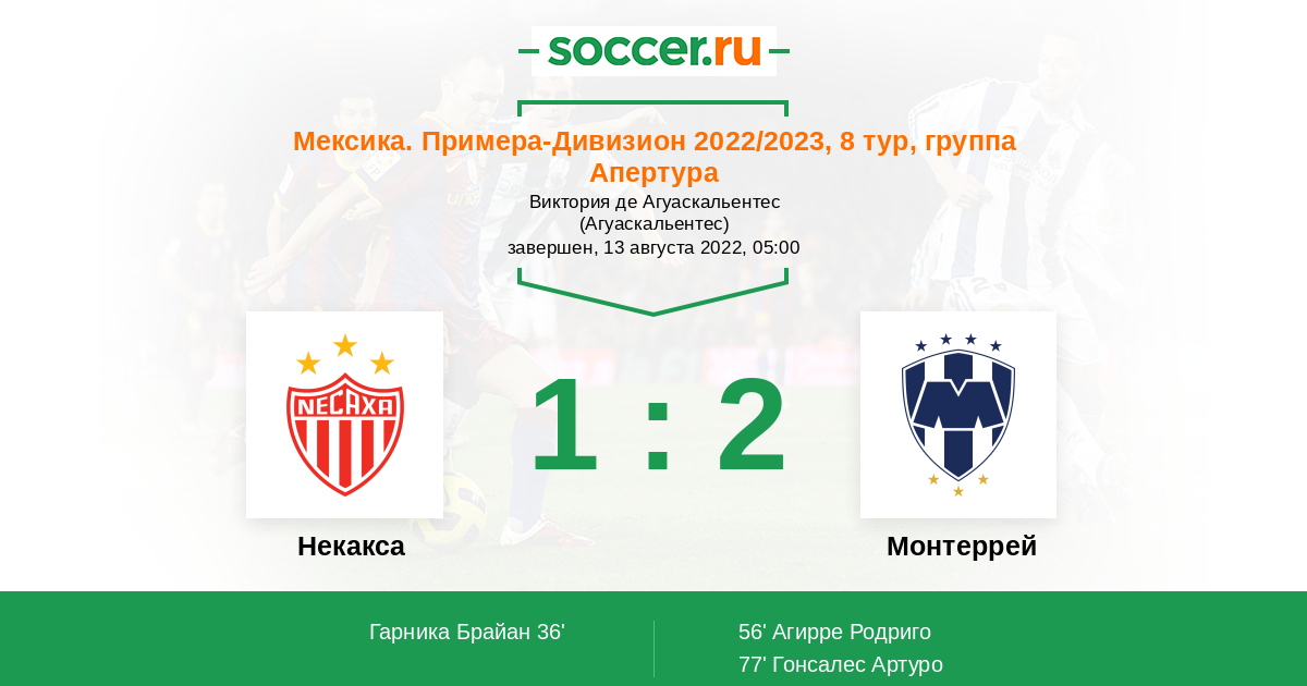 Протокол матча Некакса против Монтеррей