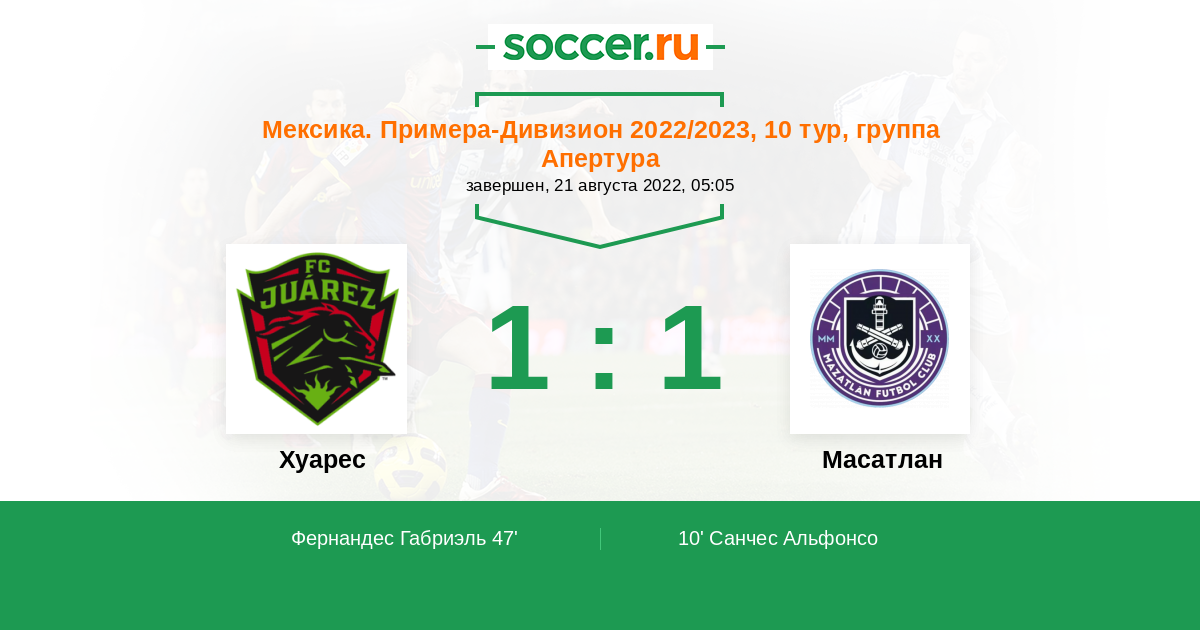 Протокол матча Хуарес против Масатлан