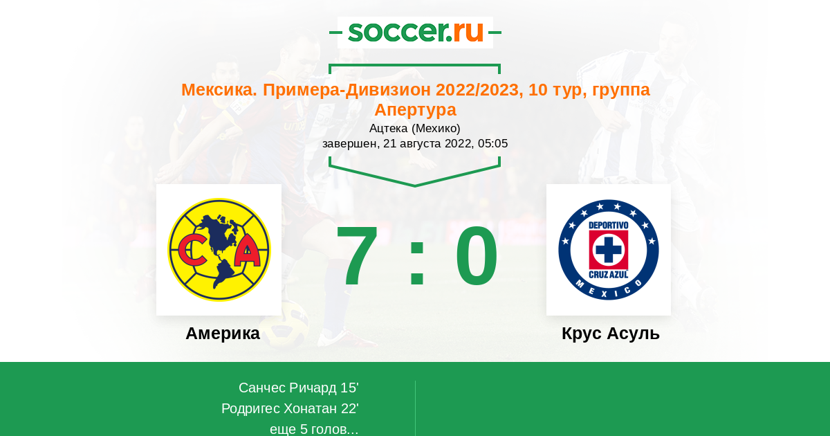 Протокол матча Америка против Крус Асуль