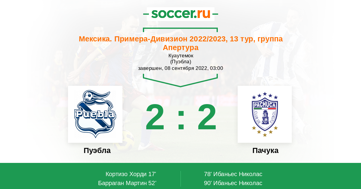 Протокол матча Пуэбла против Пачука