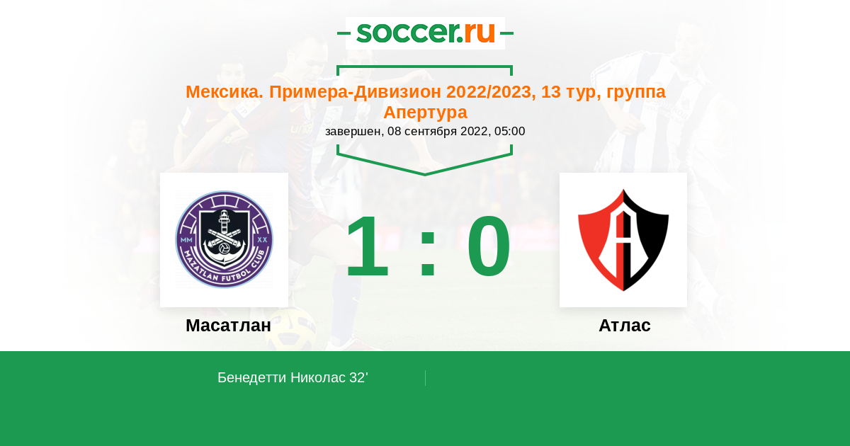 Протокол матча Масатлан против Атлас