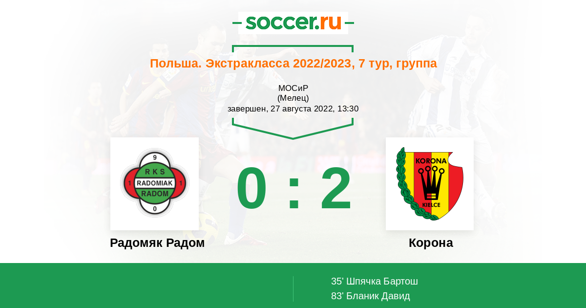 Протокол матча Радомяк Радом против Корона