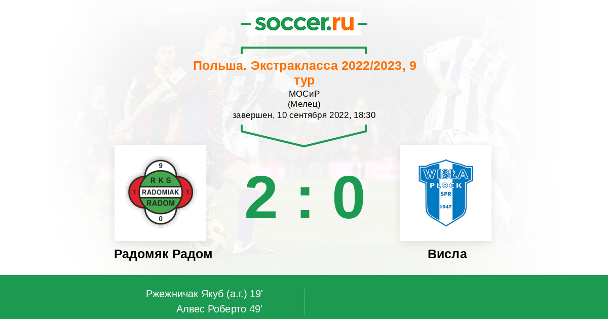 Протокол матча Радомяк Радом против Висла