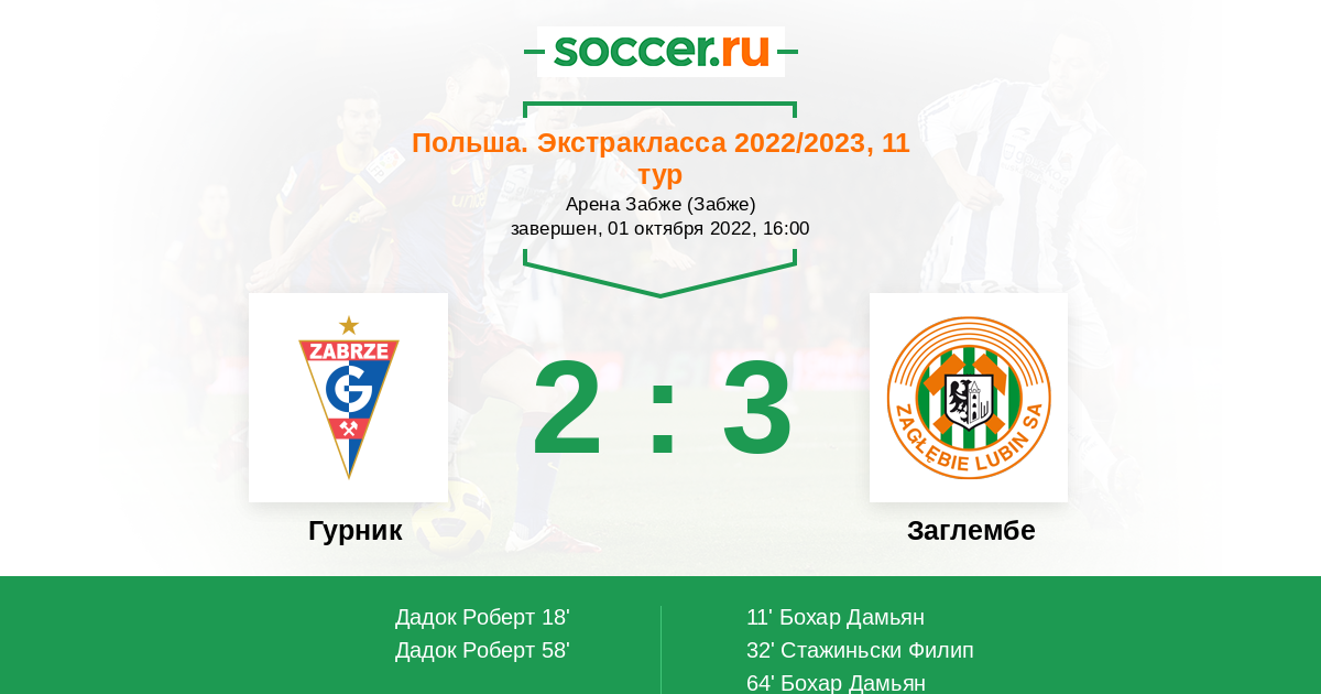 Протокол матча Гурник против Заглембе