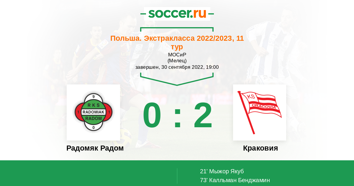 Протокол матча Радомяк Радом против Краковия