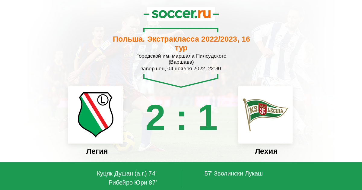 Протокол матча Легия против Лехия