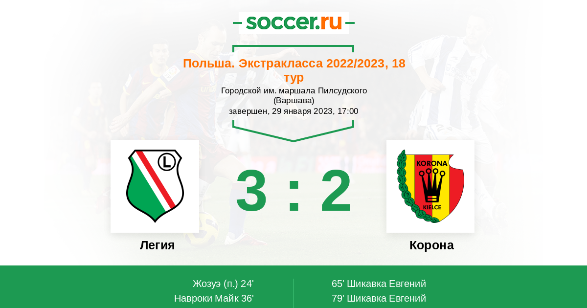 Протокол матча Легия против Корона