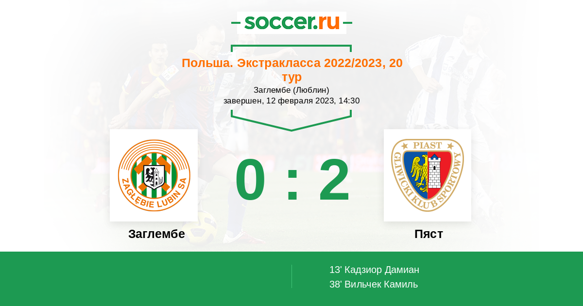 Протокол матча Заглембе против Пяст