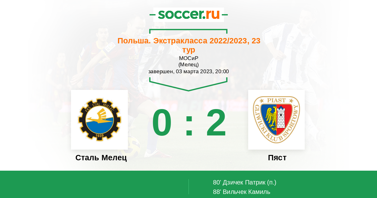 Я думаю что в этом противостоянии более чем явным фаворитом на победу выглядит команда хозяев поля Сталь Мелец и турнирное положение команды хозяев поля и то что команда играет на своём родном стадионе и есть преимущество над командой гостей Пяст . Победа хозяев поля или ничья. И ТМ 2.50.