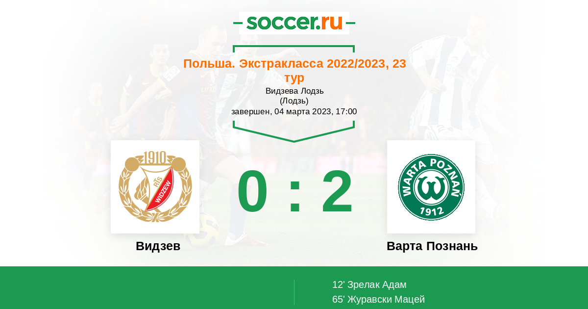 12' (0:1) Зрелак Адам (99) (Матужевски Конрад (22))