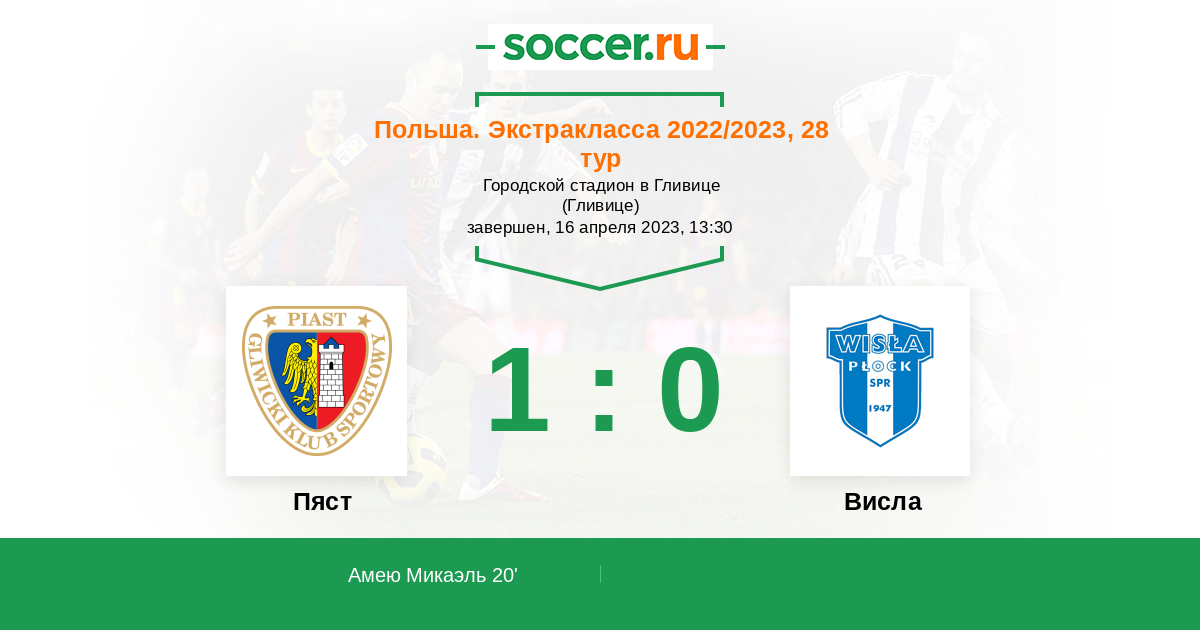 20' (1:0) Амею Микаэль (19) (Томасевич Гжегож (20))