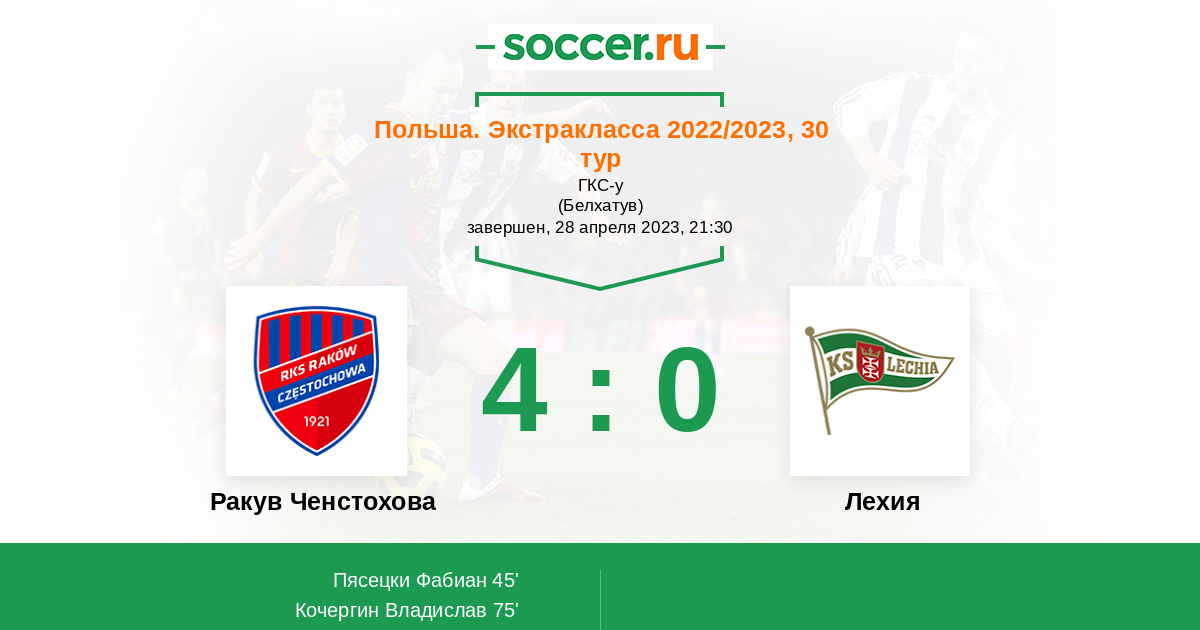 Протокол матча Ракув Ченстохова против Лехия