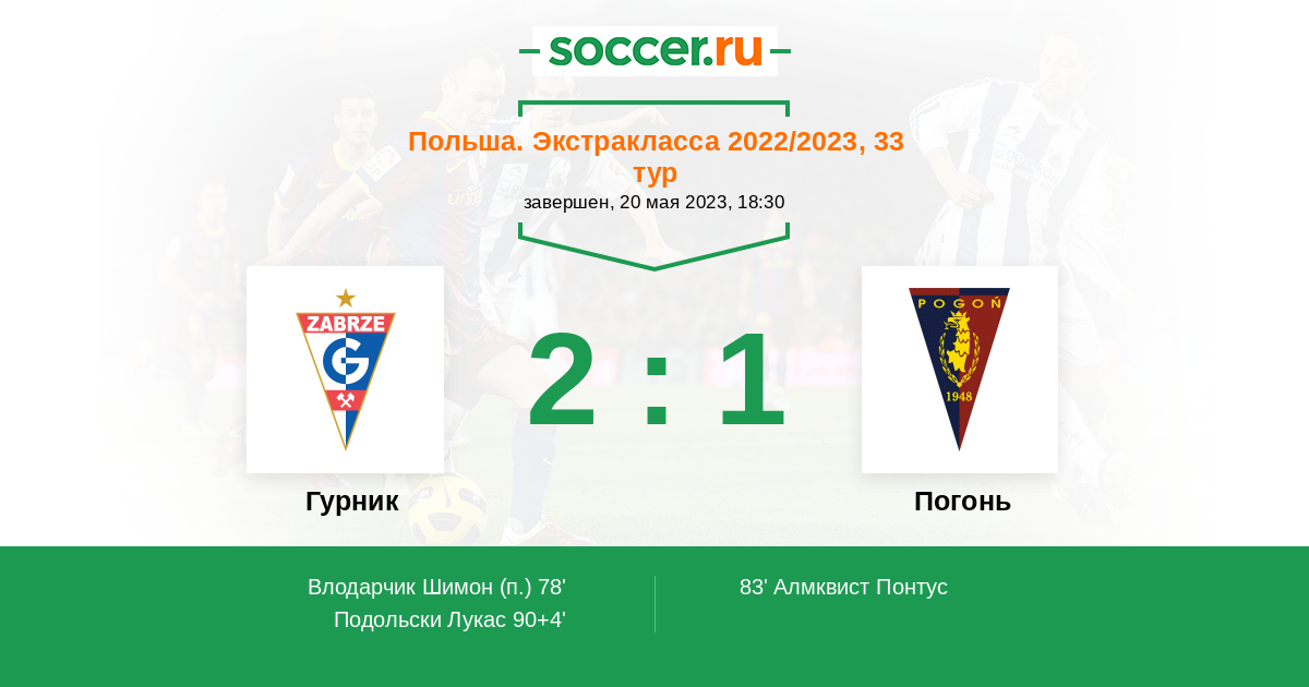 Протокол матча Гурник против Погонь