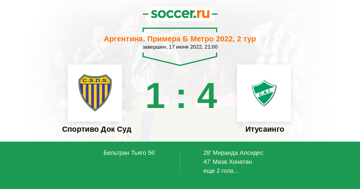 Протокол матча Спортиво Док Суд против Итусаинго