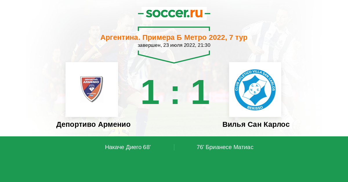 Протокол матча Депортиво Арменио против Вилья Сан Карлос