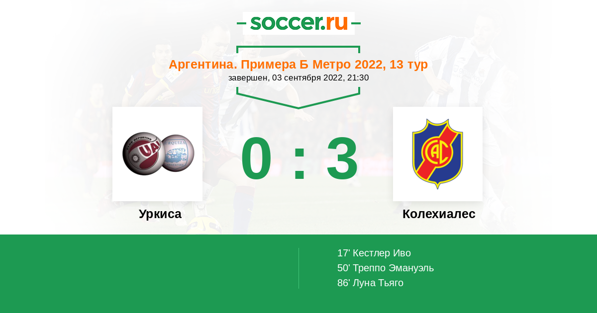 Протокол матча Уркиса против Колехиалес