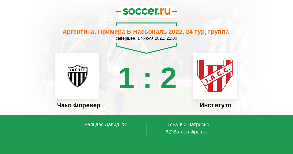 Протокол матча Чако Форевер против Институто