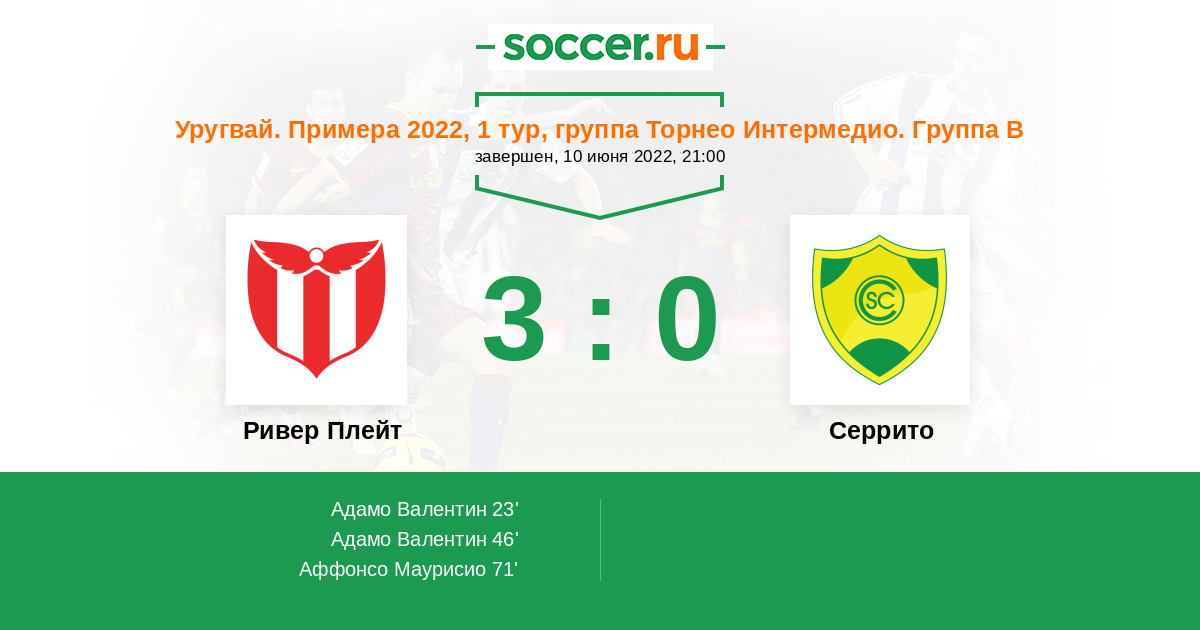 Протокол матча Ривер Плейт против Серрито