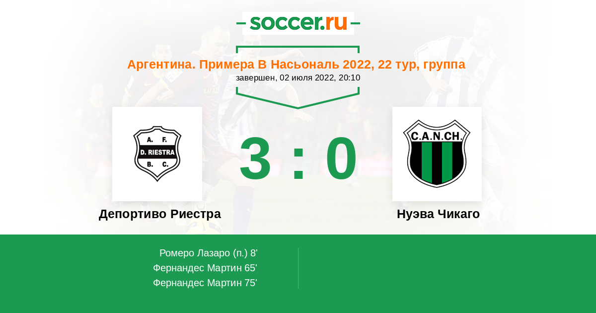 Протокол матча Депортиво Риестра против Нуэва Чикаго