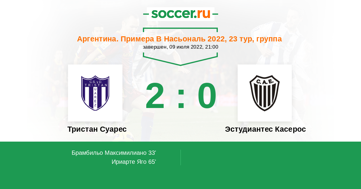 Протокол матча Тристан Суарес против Эстудиантес Касерос