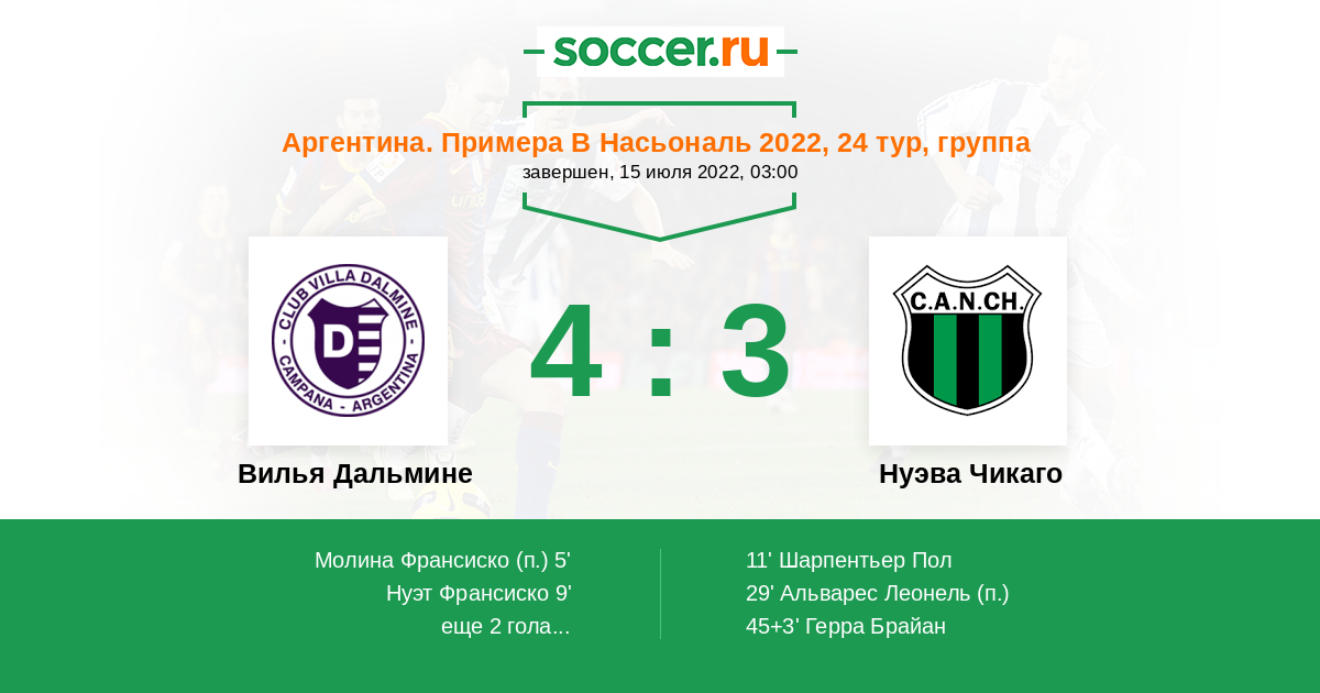 Протокол матча Вилья Дальмине против Нуэва Чикаго