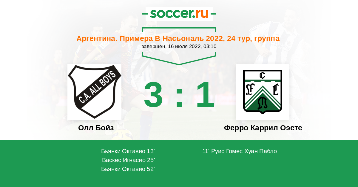 Протокол матча Олл Бойз против Ферро Каррил Оэсте