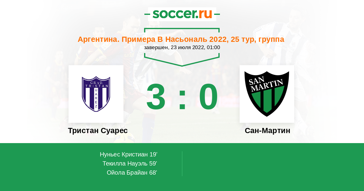 Протокол матча Тристан Суарес против Сан-Мартин