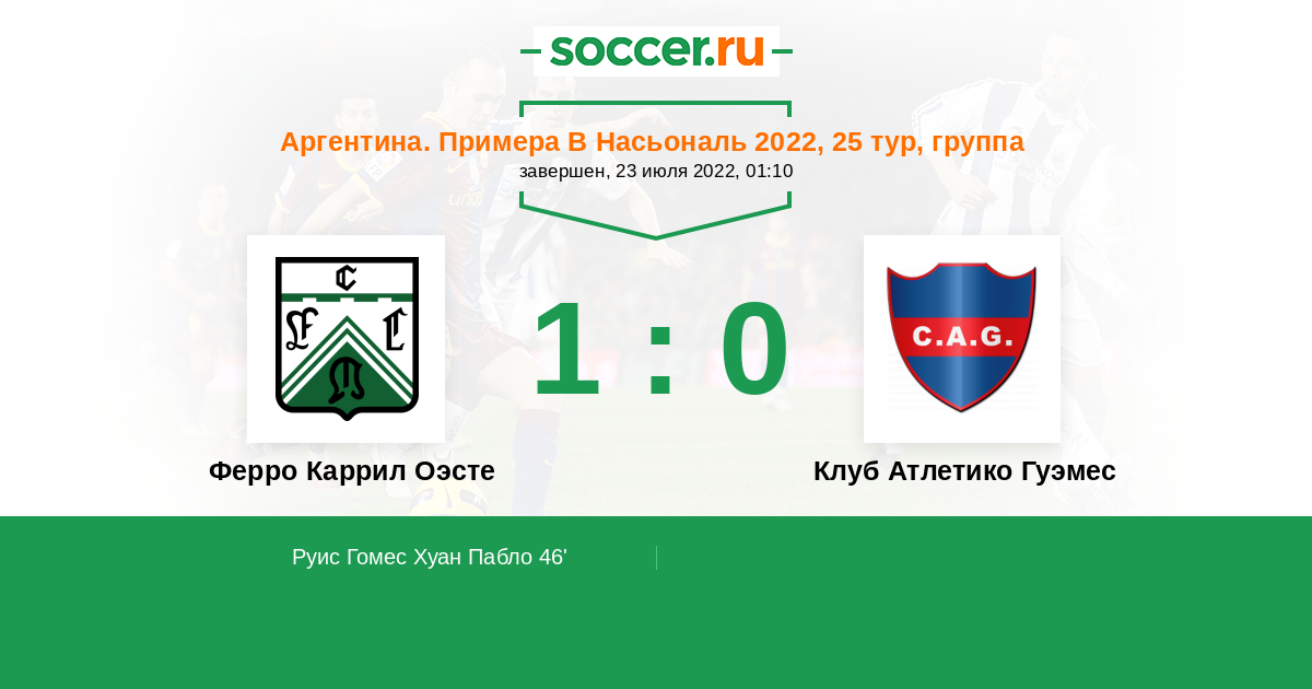 Протокол матча Ферро Каррил Оэсте против Атлетико Гуэмес