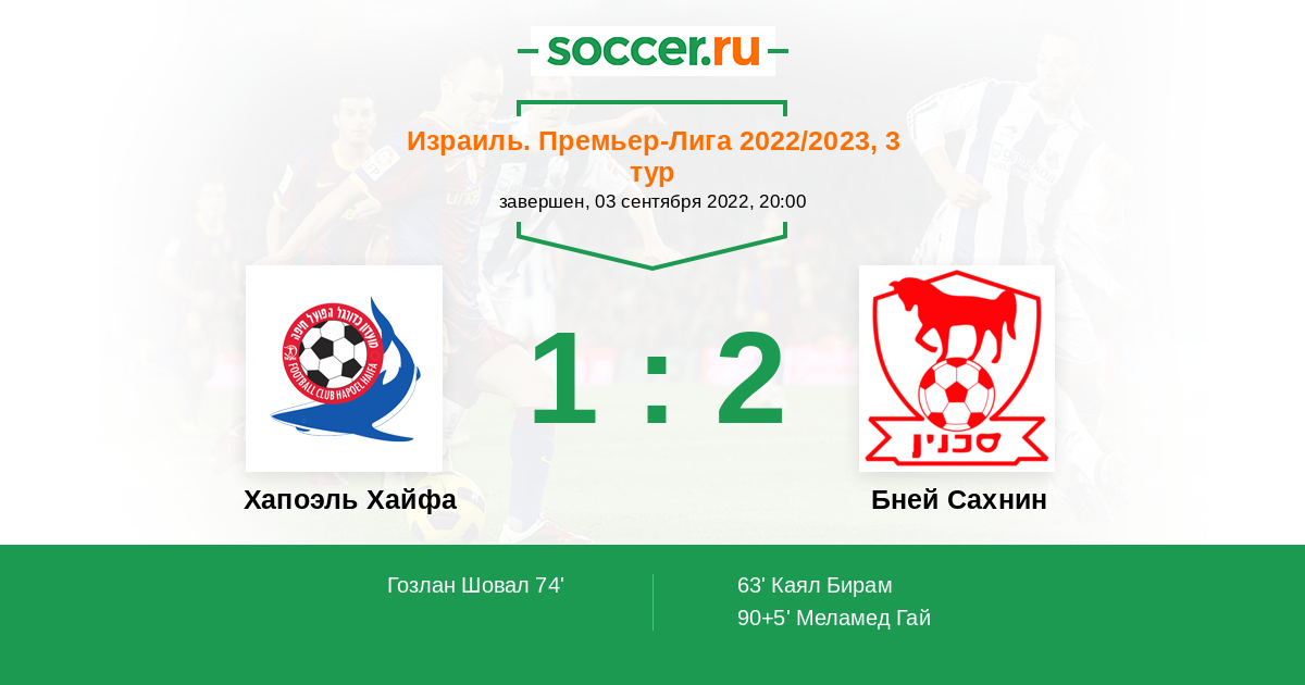 Протокол матча Хапоэль Хайфа против Бней Сахнин