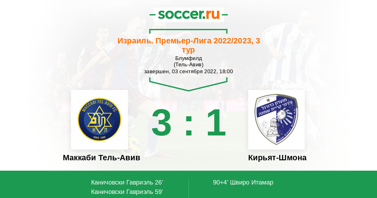 Протокол матча Маккаби Тель-Авив против Кирьят-Шмона