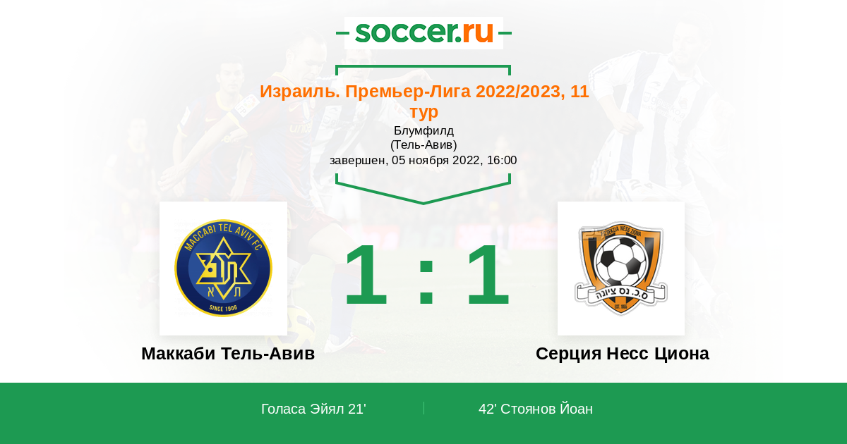 Протокол матча Маккаби Тель-Авив против Серция Несс Циона