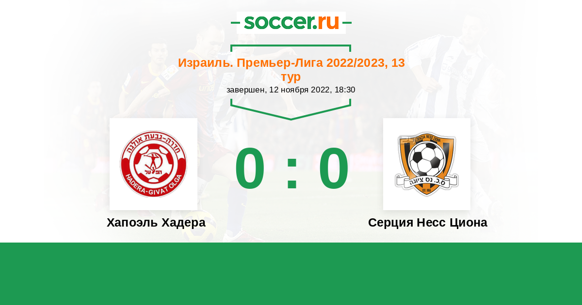 Протокол матча Хапоэль Хадера против Серция Несс Циона