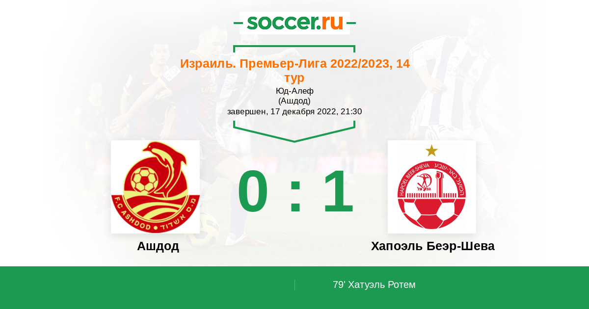 Протокол матча Ашдод против Хапоэль Беэр-Шева