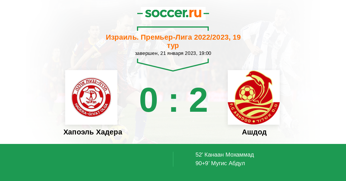 Протокол матча Хапоэль Хадера против Ашдод