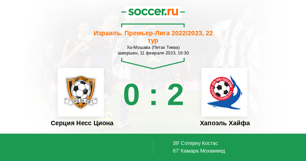 Протокол матча Серция Несс Циона против Хапоэль Хайфа