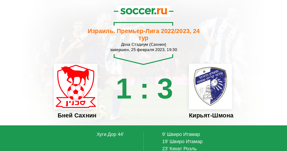 Протокол матча Бней Сахнин против Кирьят-Шмона