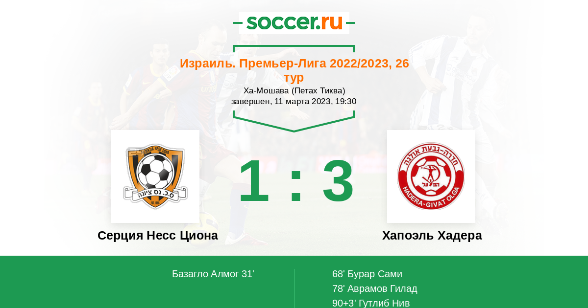Протокол матча Серция Несс Циона против Хапоэль Хадера