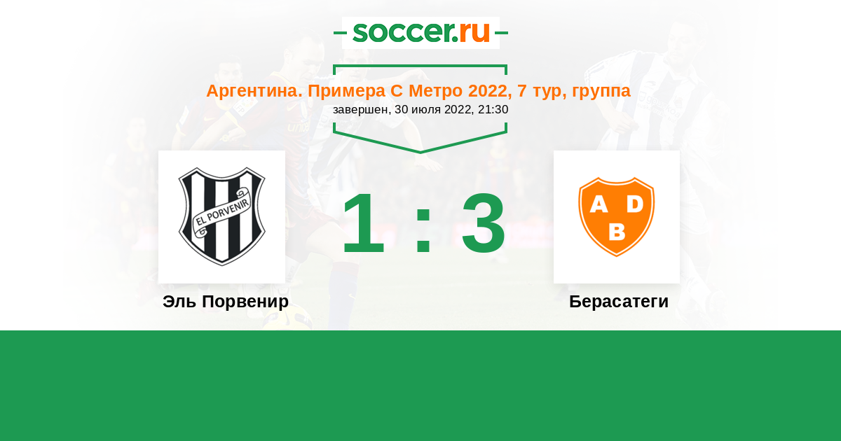Аргентина. Примера С Метро 04.08.2024 Берасатеги Логотип футбольный клуб Берасатеги (Буэнос-Айрес) 2:1 Логотип футбольный клуб Эль Порвенир (Буэнос-Айрес) Эль Порвенир