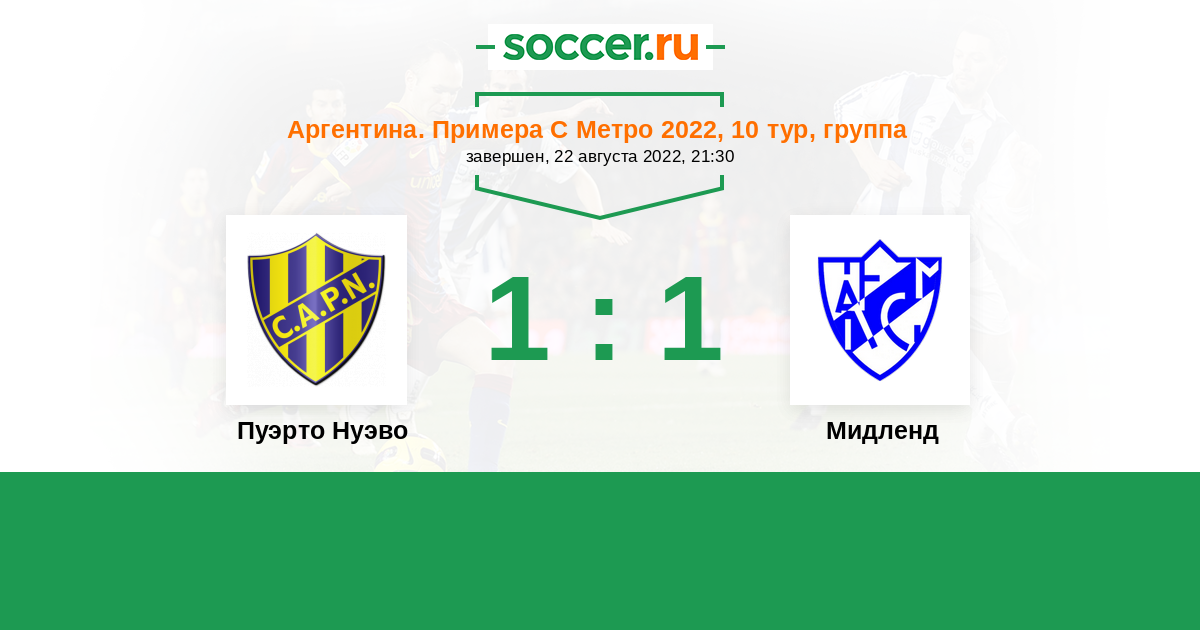 Аргентина. Примера С Метро 18.04.2022 Мидленд Логотип футбольный клуб Мидленд (Либертад) 0:0 Логотип футбольный клуб Пуэрто Нуэво Пуэрто Нуэво