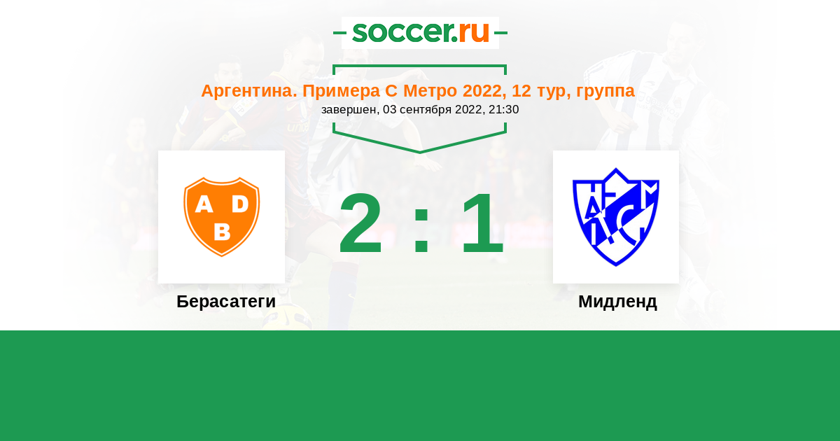 Аргентина. Примера С Метро 02.09.2014 Берасатеги Логотип футбольный клуб Берасатеги (Буэнос-Айрес) 2:1 Логотип футбольный клуб Мидленд (Либертад) Мидленд