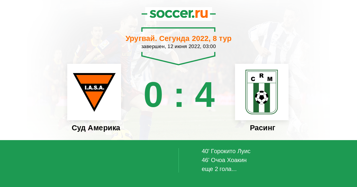 Протокол матча Суд Америка против Расинг