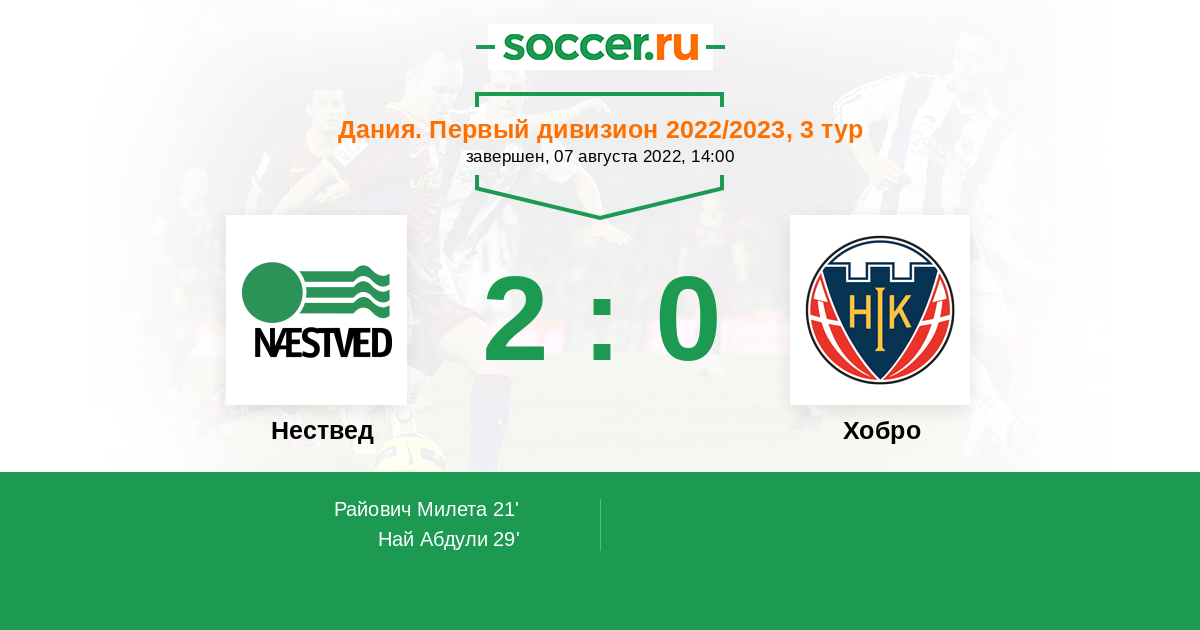 Протокол матча Нествед против Хобро