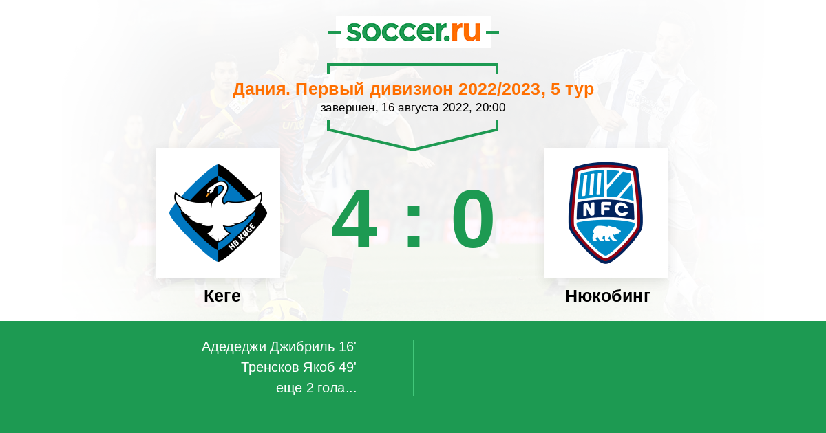 Протокол матча Кеге против Нюкобинг