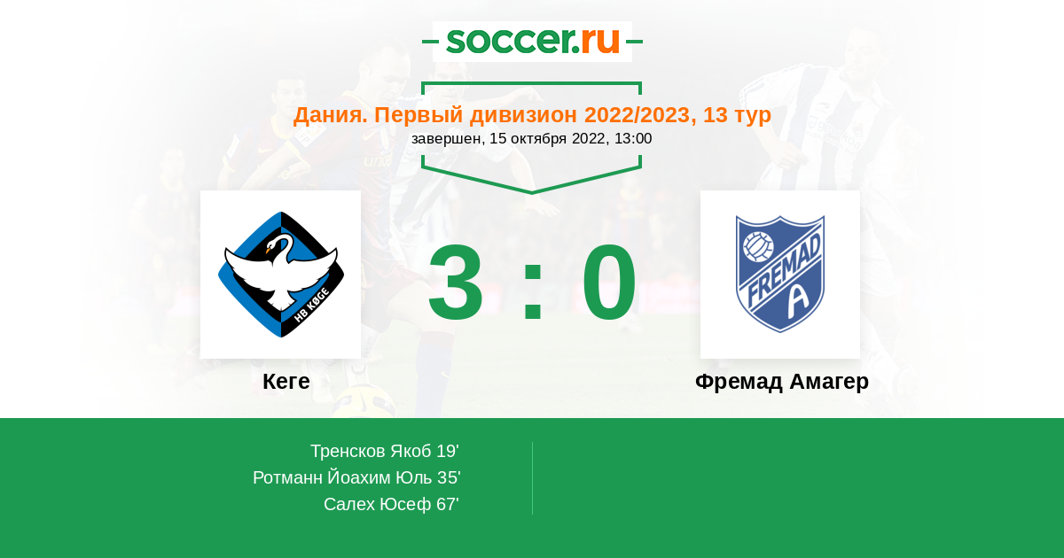 Протокол матча Кеге против Фремад Амагер