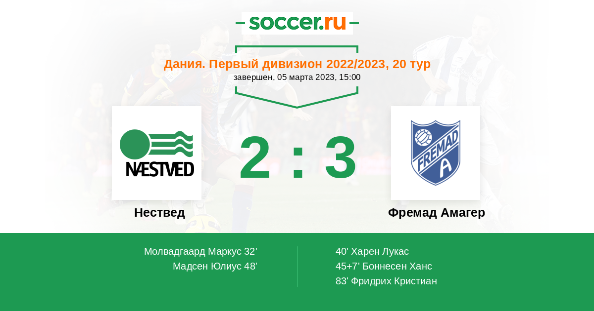 40' (1:1) Харен Лукас (7) (Маркуссен Густав (8))