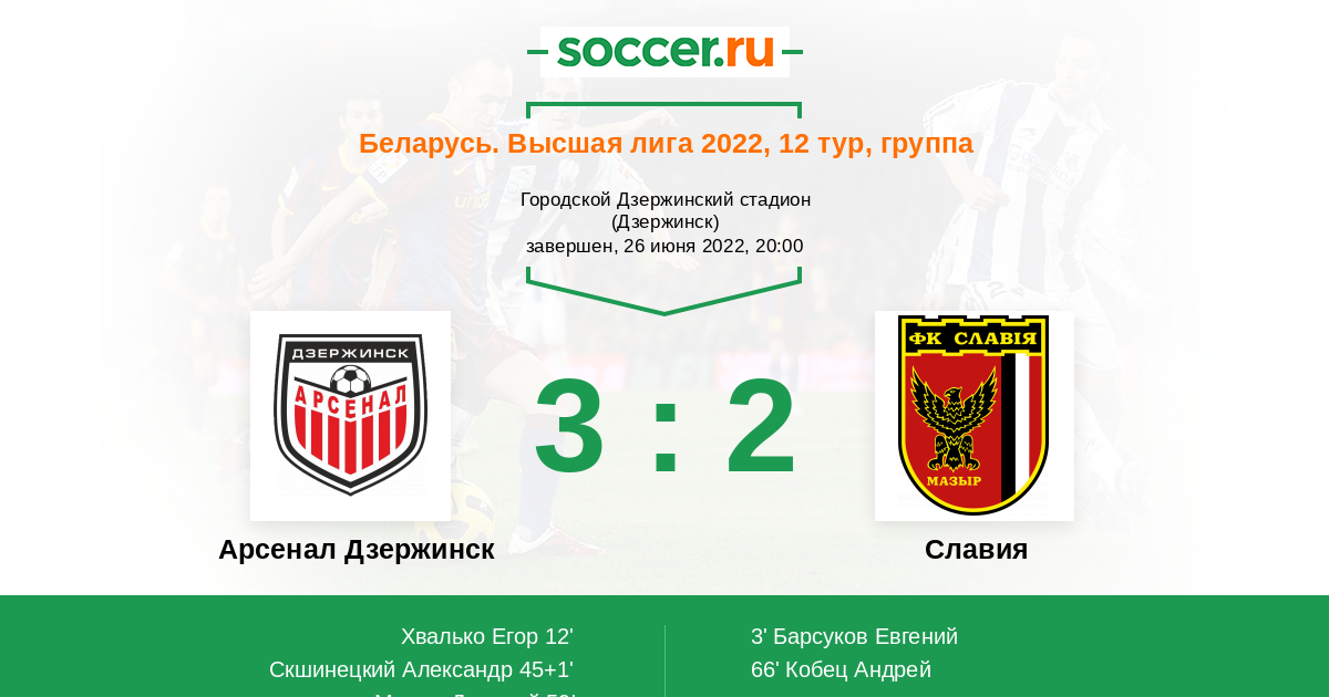 Протокол матча Арсенал Дзержинск против Славия