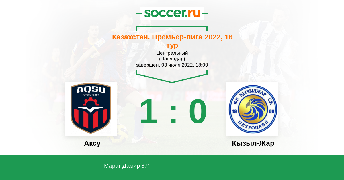 Протокол матча Аксу против Кызыл-Жар