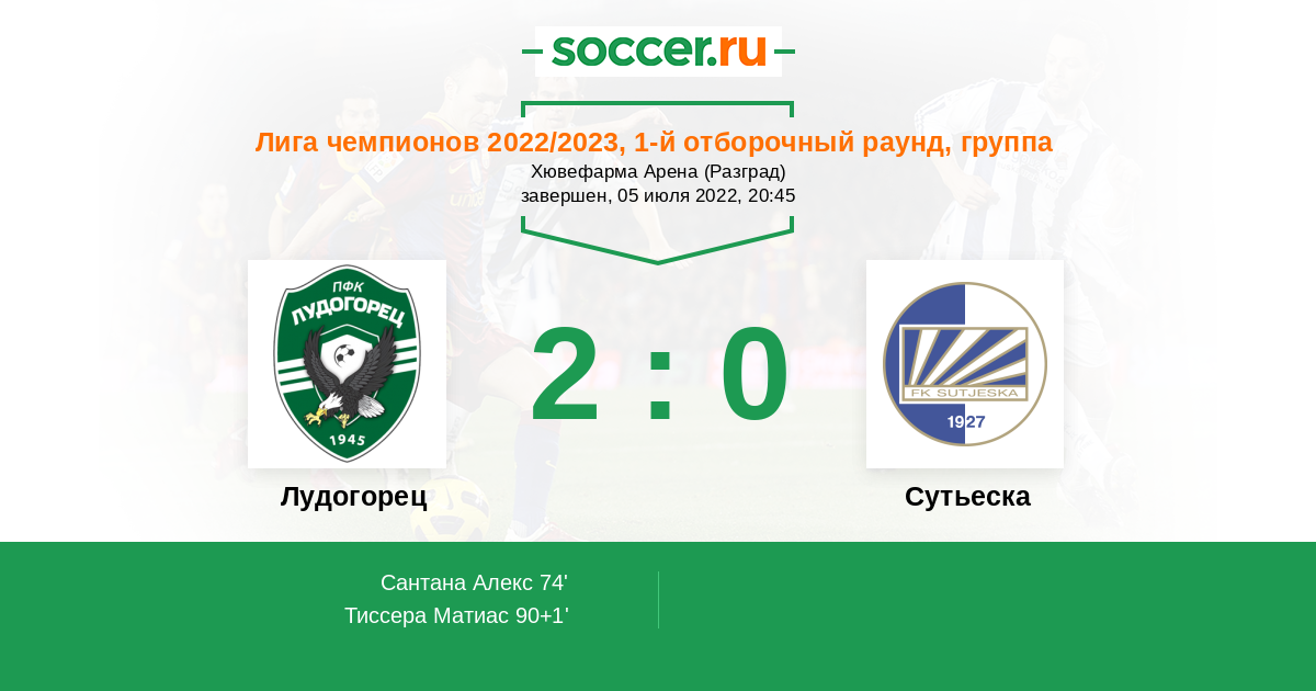 Протокол матча Лудогорец против Сутьеска