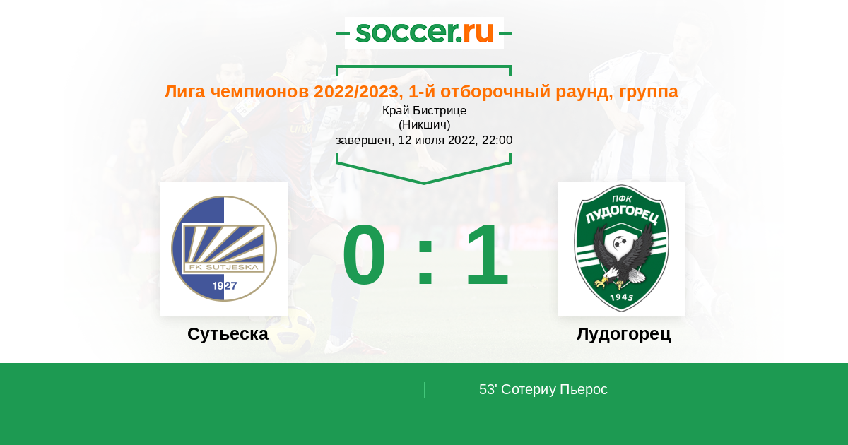 Протокол матча Сутьеска против Лудогорец