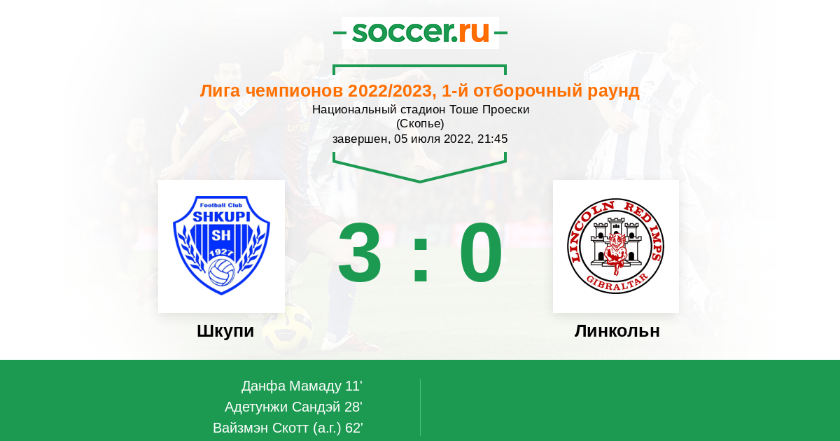 Протокол матча Шкупи против Линкольн